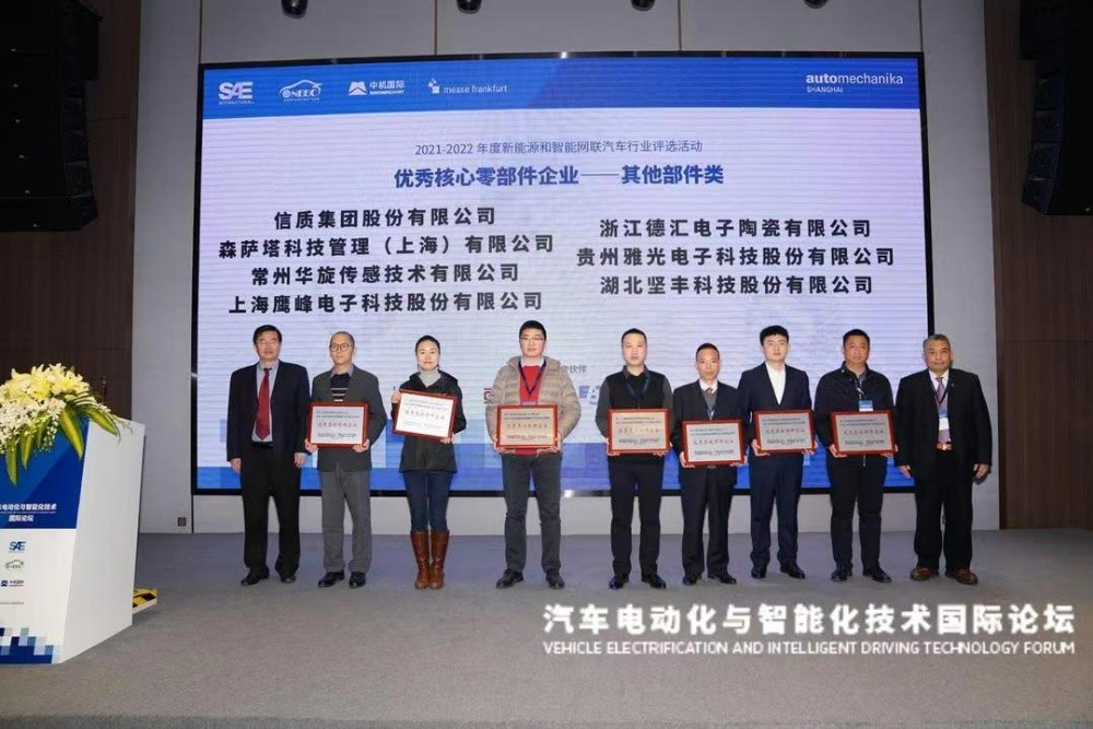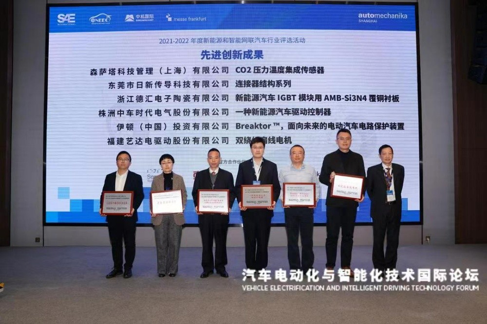德匯電子應(yīng)邀參加2022汽車電動化與智能化技術(shù)國際論壇。在論壇頒獎典禮上,德匯電子被授予優(yōu)秀核心零部件企業(yè)以及先進(jìn)創(chuàng)新成果獎。主辦方代表新能源和智能網(wǎng)聯(lián)汽車行業(yè)感謝德匯電子通過持續(xù)創(chuàng)新,為新能源汽車IGBT模塊用AMB-Si3N4覆銅襯板做出的貢獻(xiàn)。我司總經(jīng)理徐榮軍親自出席并登臺領(lǐng)獎,充分顯示了我司對此獎項(xiàng)的高度重視。